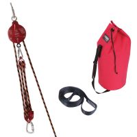 one RALF pulley, two double pulleys, two karabiners, one maillon rapide, one round sling, and a rope bag with appropriately sized rope length based on the kit ordered